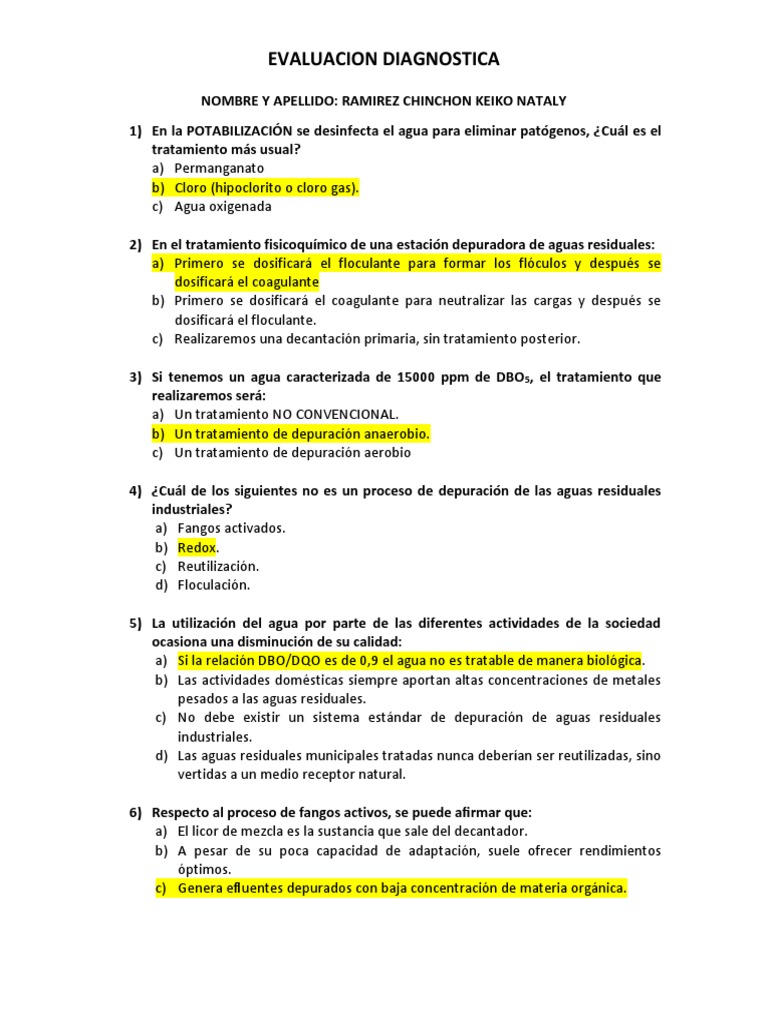 a. 14. Para predecir cómo se comportará un agua residual frente a un proceso