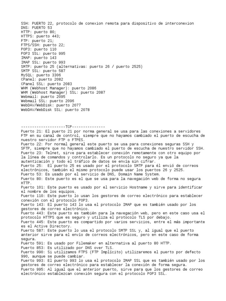 FTPS/SSH: puerto 22;
