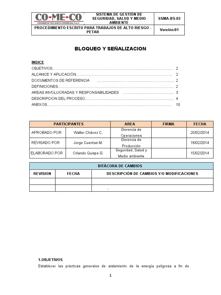 sobre las disposiciones de los procedimientos de bloqueo y señalización y de las
