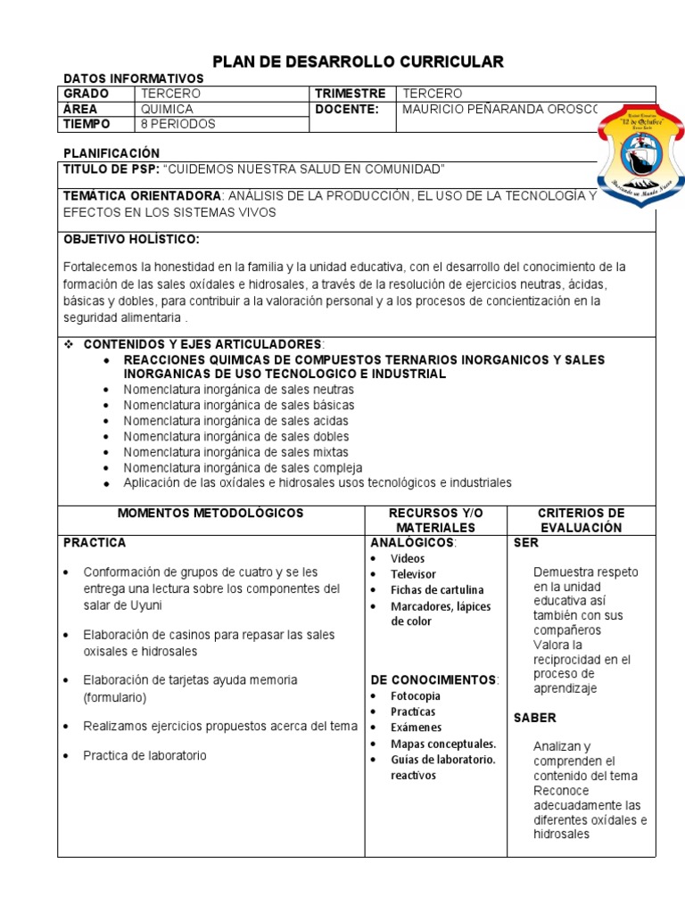 ÁREA QUIMICA DOCENTE: MAURICIO PEÑARANDA OROSCO