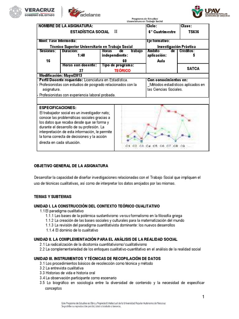 Perfil Docente requerido: Licenciatura en Estadística. Con conocimientos en: