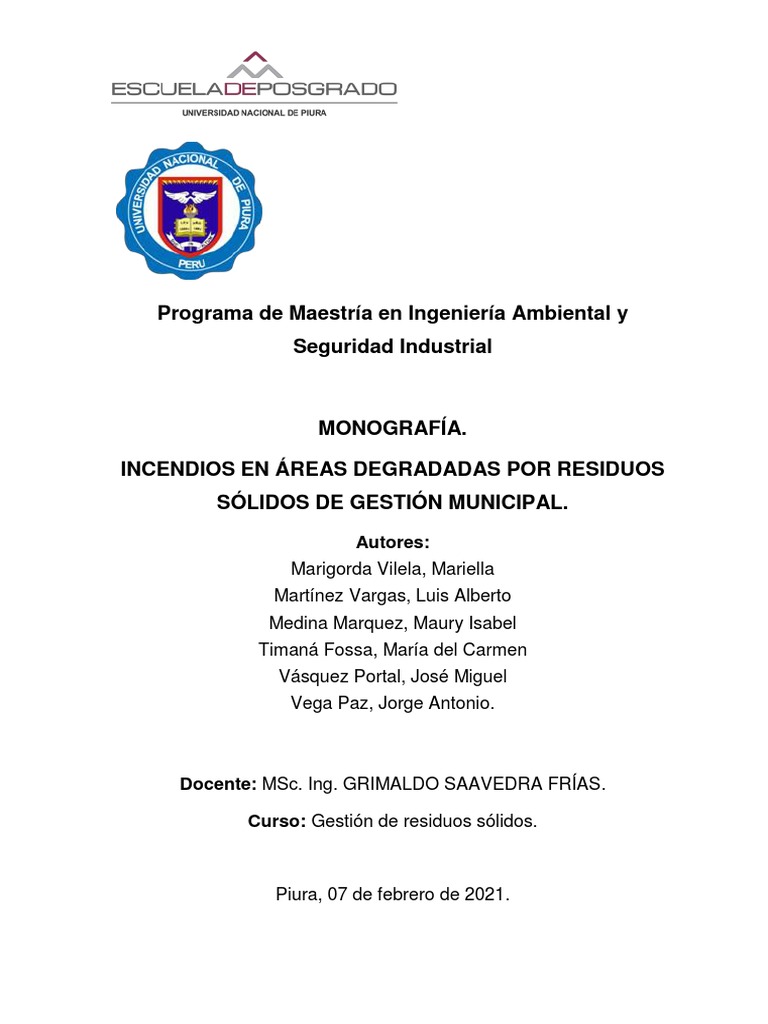 Manejo de Áreas Degradadas por Residuos Sólidos, a la autoridad competente, en