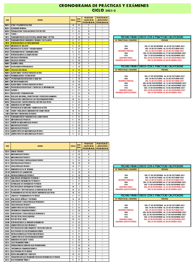 EE320 CIRCUITOS ELECTRICOS I 4 F 5 5 FECHAS PARA CURSOS CON 4 PRÁCTICAS CALIFICADAS
