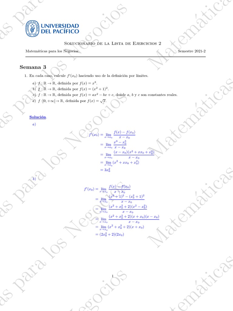 1. En cada caso, calcule f ′ (x0 ) haciendo uso de la definición por lı́mites.
