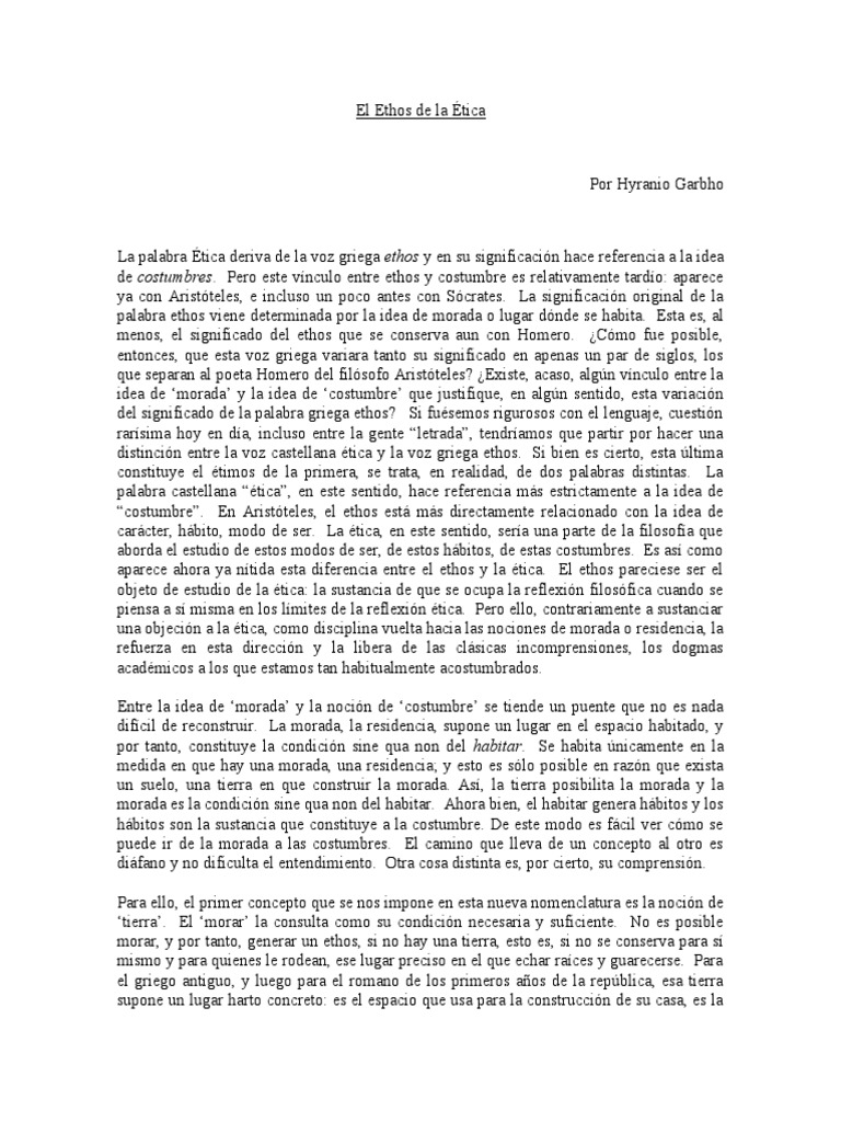 del significado de la palabra griega ethos? Si fuésemos rigurosos con el lenguaje, cuestión