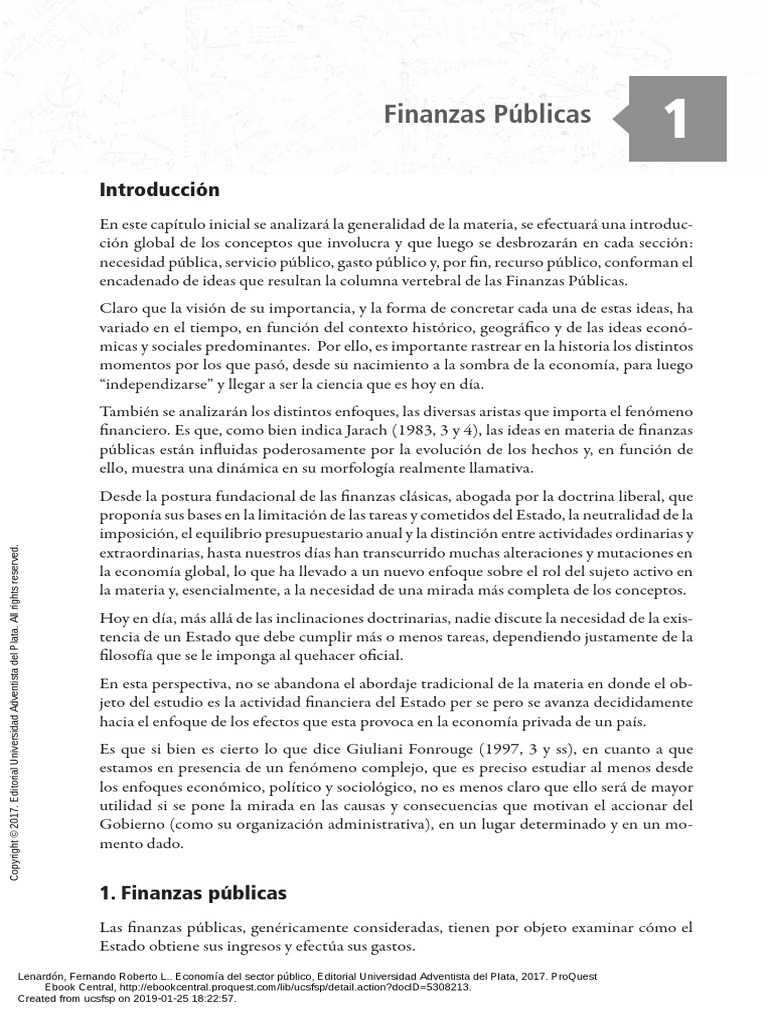 Lenardón, Fernando Roberto L.. Economía del sector público, Editorial Universidad Adventista del Plata, 2017. ProQuest
