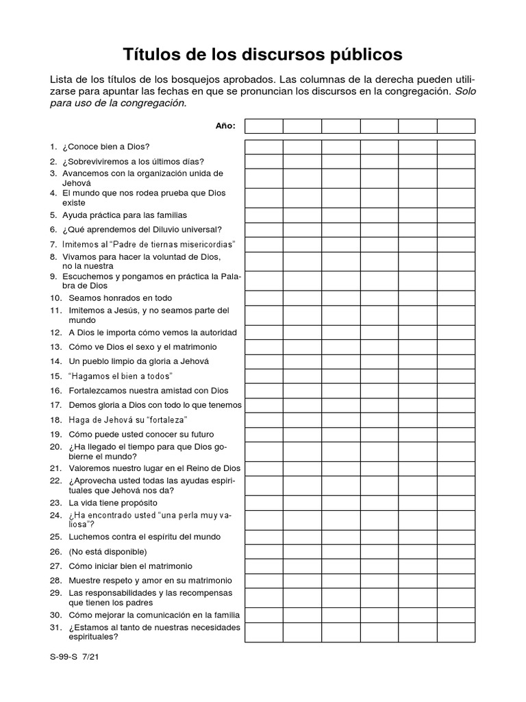 zarse para apuntar las fechas en que se pronuncian los discursos en la congregación. Solo