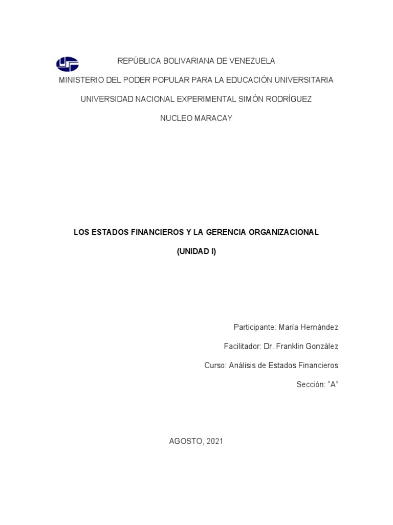 LOS ESTADOS FINANCIEROS Y LA GERENCIA ORGANIZACIONAL