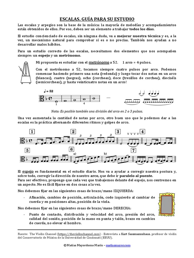 escalas es la práctica alternando diferentes ritmos y golpes de arco.