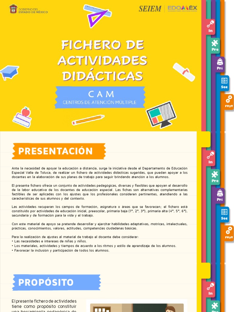 de la labor educativa de los docentes de educación especial. Las fichas son alternativas complementarias