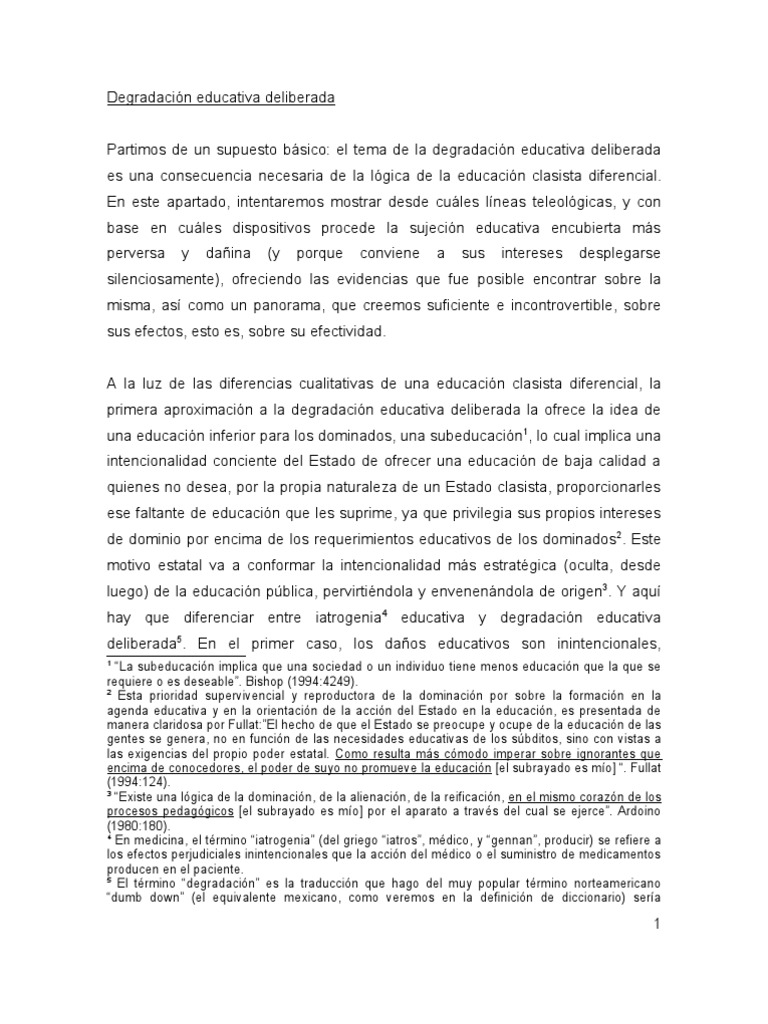 degradación educativa de la población se encuentra dentro de las páginas de un documento