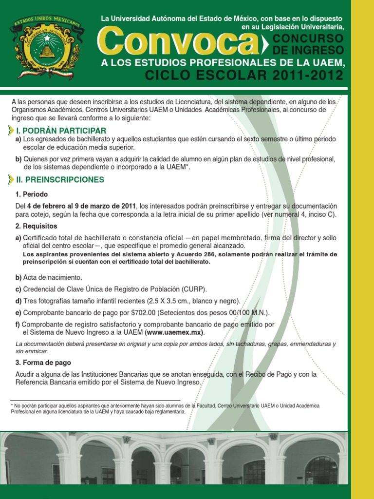 Organismos Académicos, Centros Universitarios UAEM o Unidades Académicas Profesionales, al concurso de