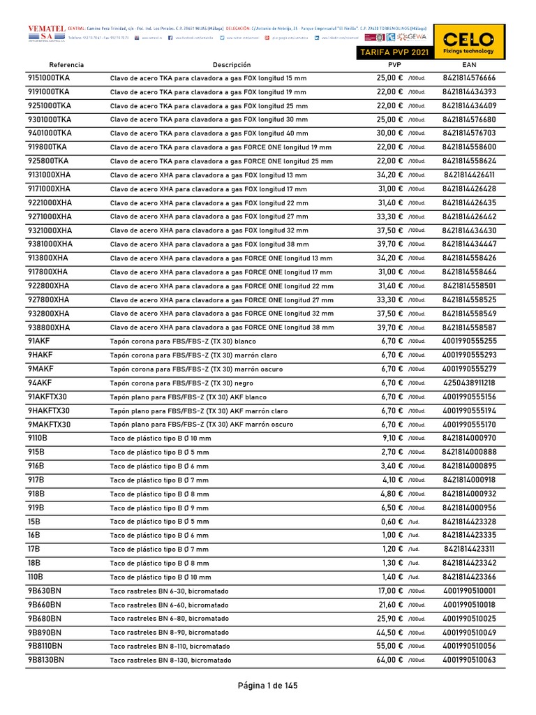 Celo Tarifa PVP 2021