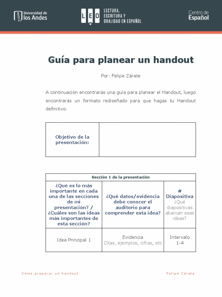 A continuación encontrarás una guía para planear el Handout, luego