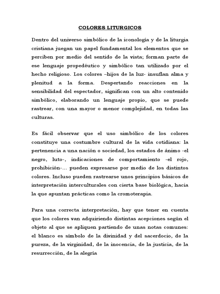 fiestas gozosas; el rojo, para los mártires y Pentecostés; el