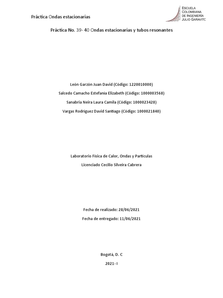 de ondas estacionarias en una cuerda y tubos resonantes, las cuales se llevaron a cabo en