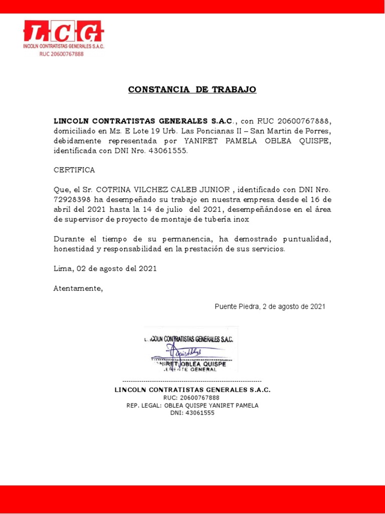 LINCOLN CONTRATISTAS GENERALES S.A.C.