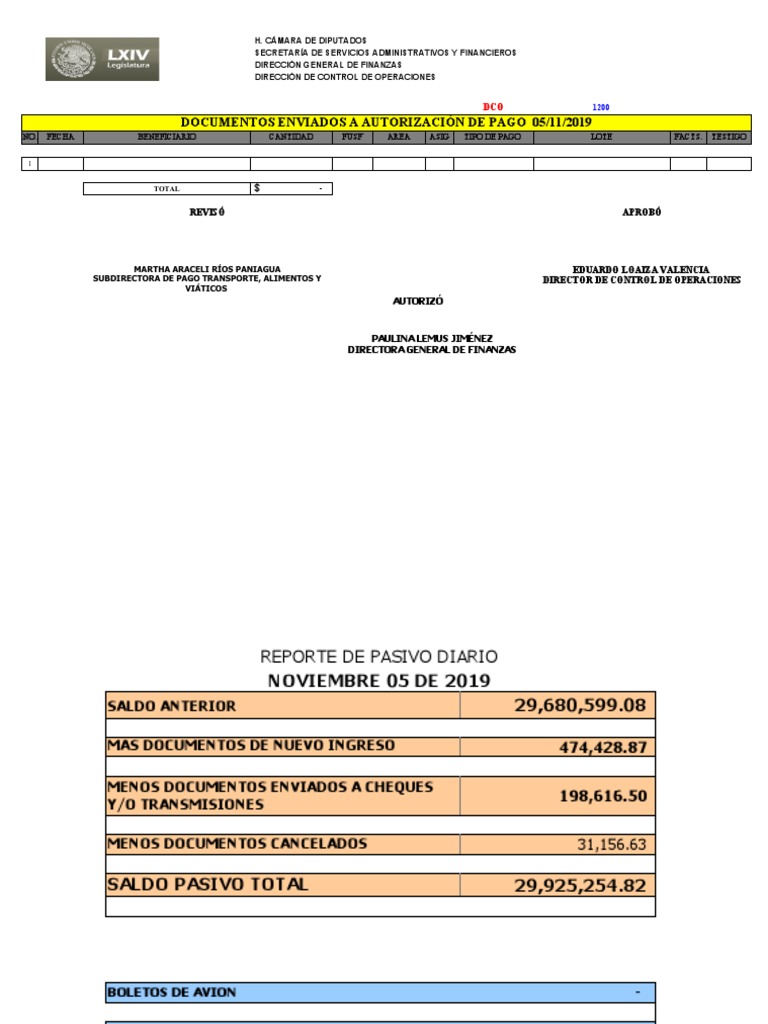 DOCUMENTOS ENVIADOS A AUTORIZACIÓN DE PAGO 05/11/2019