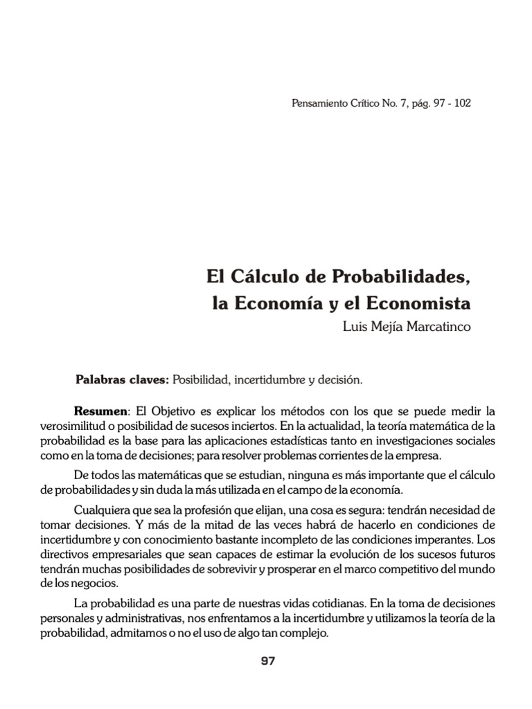 Luis Mejía Marcatinco El cálculo de probabilidades, la economía y el economista