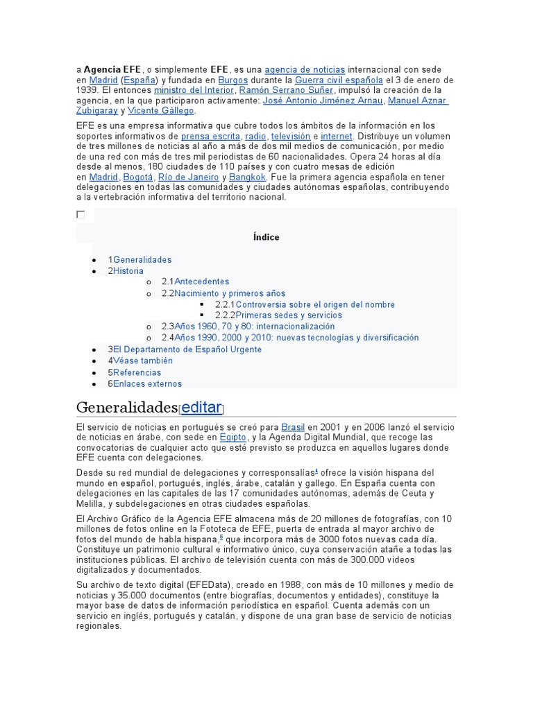 Agencia EFE, o simplemente EFE, es una agencia de noticias internacional con sede