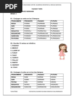 3. Tomando como ejemplo el verbo amo (1ªD), escribe la primera persona de todos