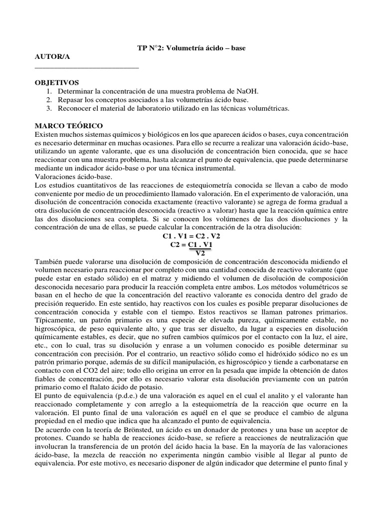 2. Repasar los conceptos asociados a las volumetrías ácido base.