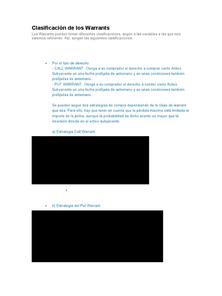 Clasificación de los Warrants