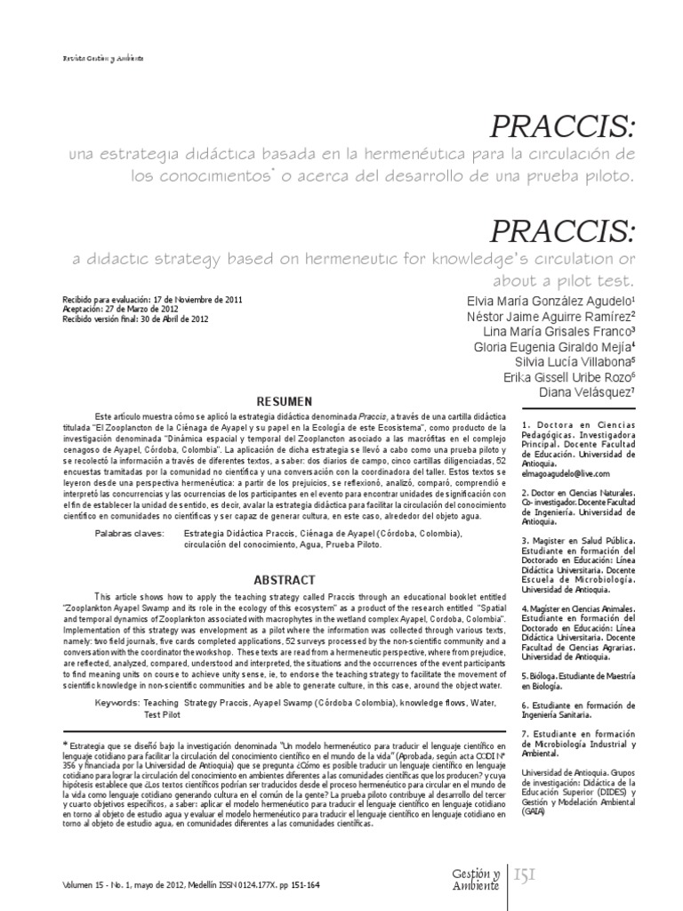 Palabras claves: Estrategia Didáctica Praccis, Ciénaga de Ayapel (Córdoba, Colombia),