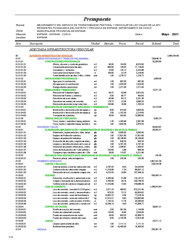 [Link] Carguio y transporte de material p/sub base m3 3,455.06 29.16 100,749.55