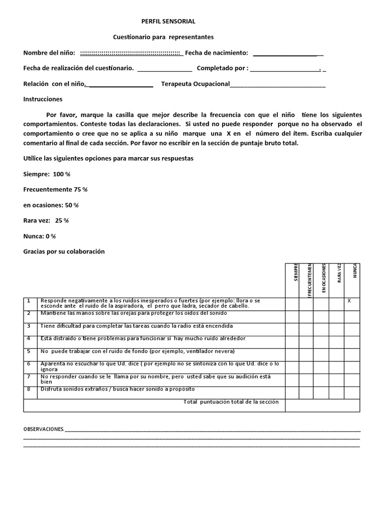 Tomado de: “ SENSORY PROFILE ” Winnie Dunn.