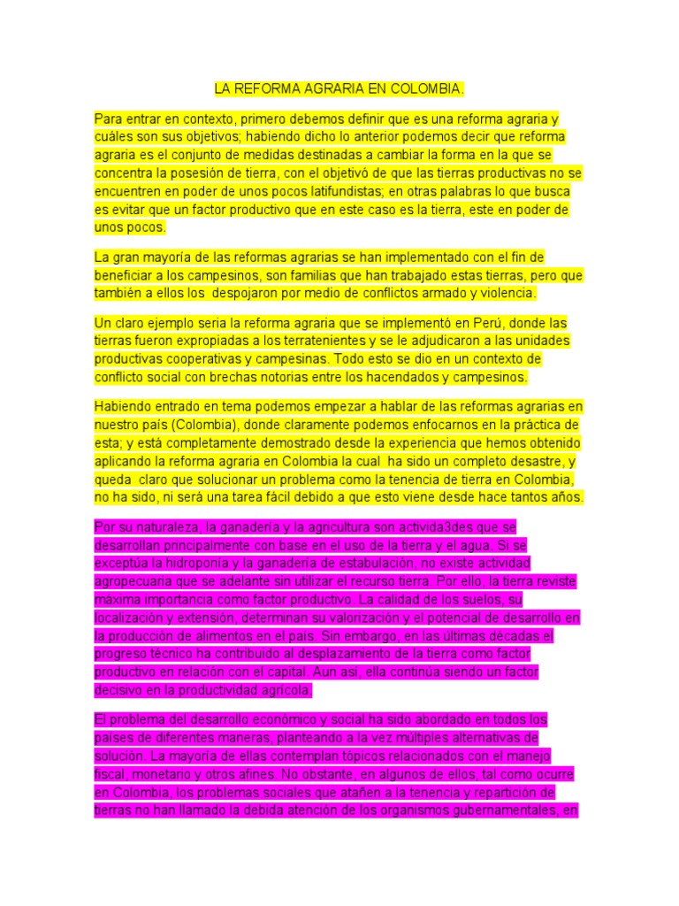 aplicando la reforma agraria en Colombia la cual ha sido un completo desastre, y