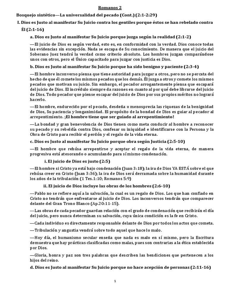 Bosquejo sintético—La universalidad del pecado (Cont.) (2:1-2:29)