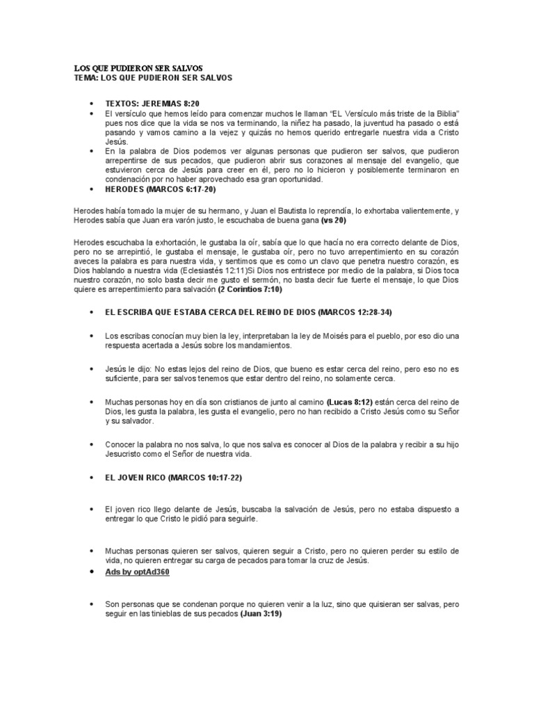 TEMA: LOS QUE PUDIERON SER SALVOS