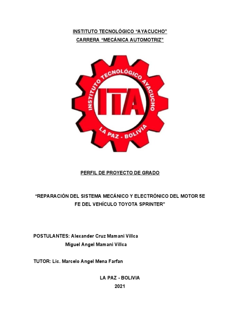 tecnológico Ayacucho de la carrera de Mecánica Automotriz, donde