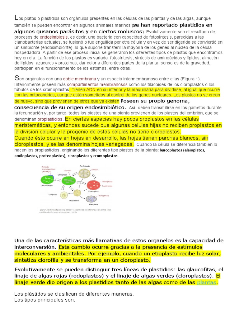 hospedadora. A partir de ese proceso inicial se generaron los diferentes tipos de plastos que encontramos