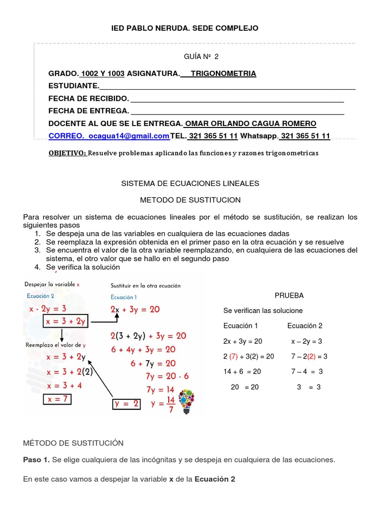 4. Resolver el siguiente sistema de ecuaciones lineales 2 x 2 aplicando el método de sustitución