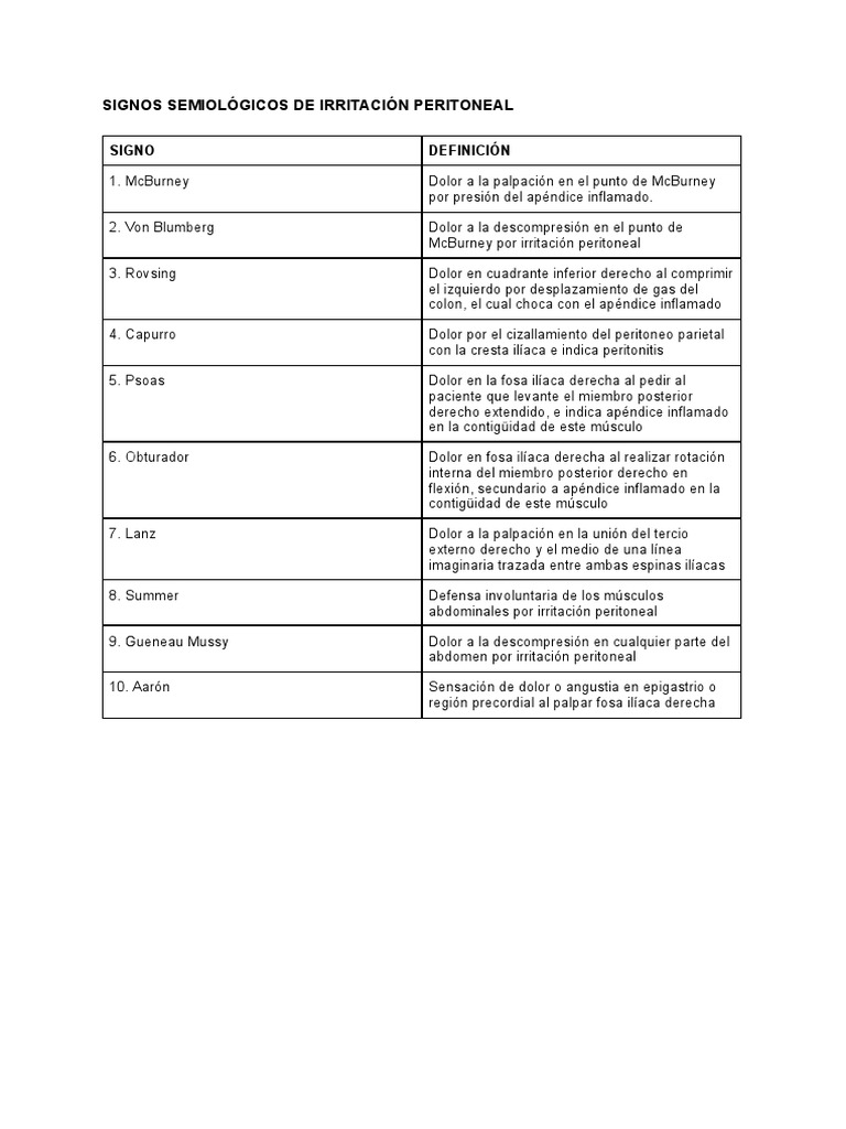 1. McBurney Dolor a la palpación en el punto de McBurney