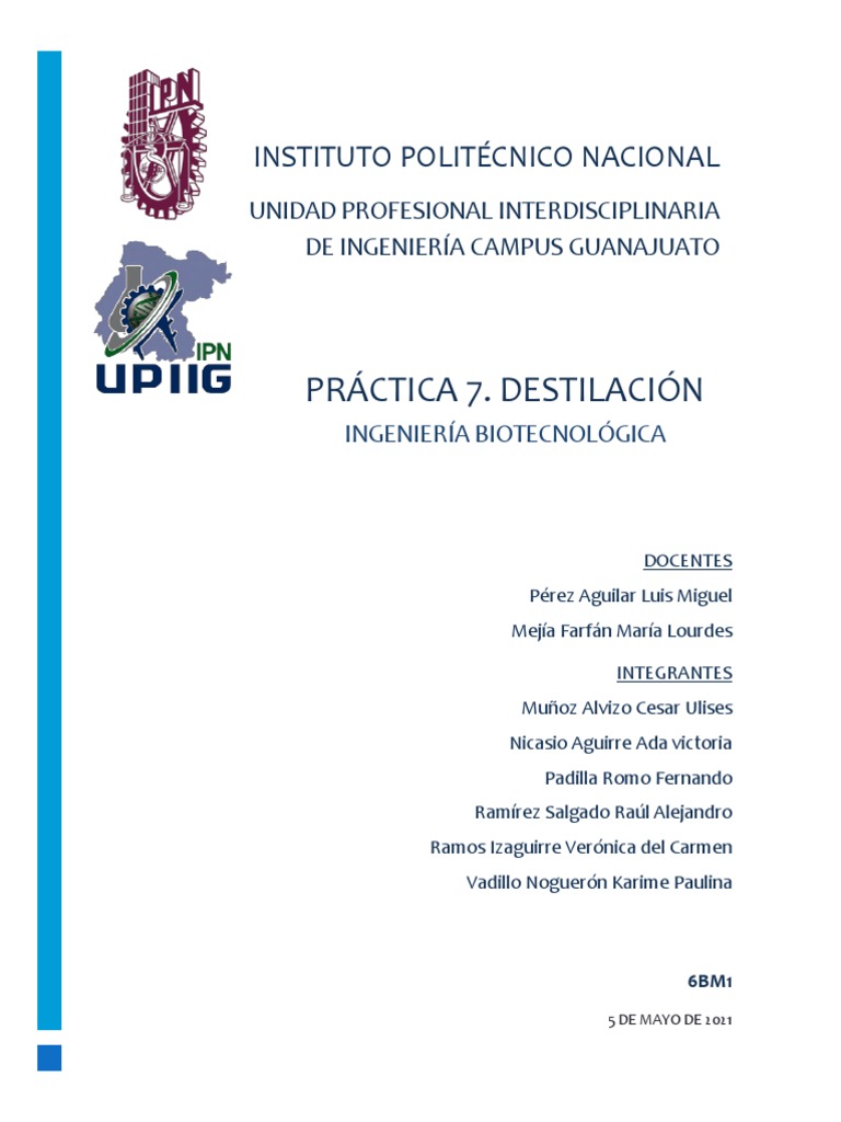 En el presente informe se trabajó la operación de destilación con el equipo PS-DA-480/DE, en