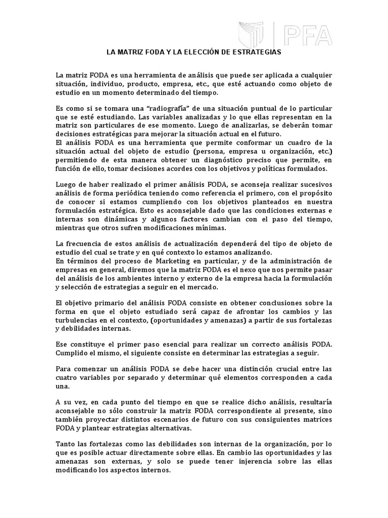 LA MATRIZ FODA Y LA ELECCIÓN DE ESTRATEGIAS
