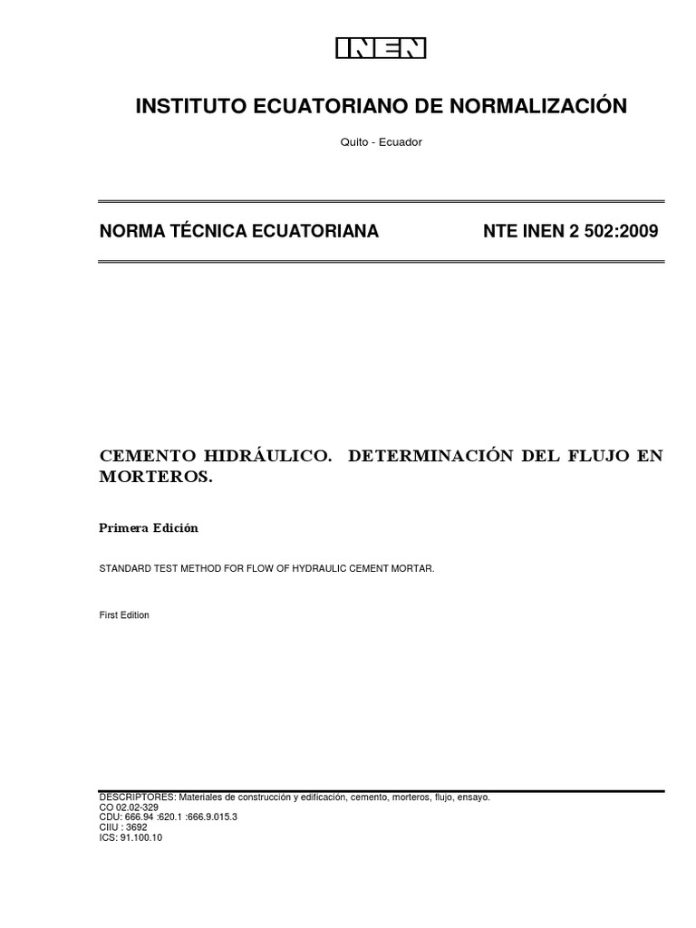 Ecuatoriana DETERMINACIÓN DEL FLUJO EN MORTEROS 2 502:2009