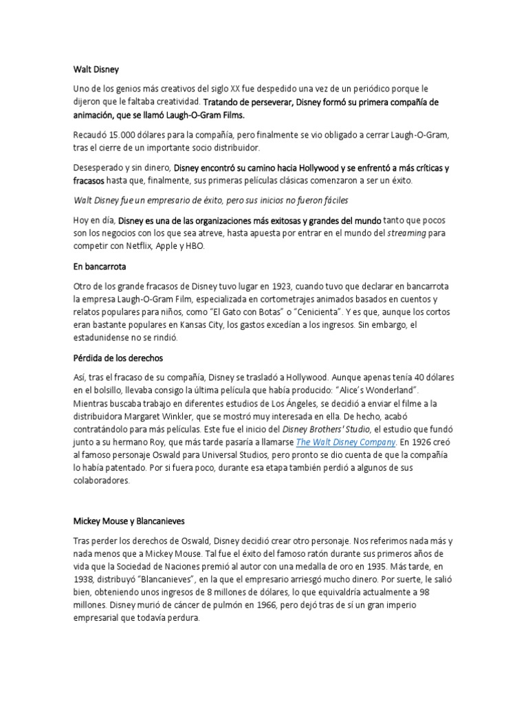 Walt Disney fue un empresario de éxito, pero sus inicios no fueron fáciles