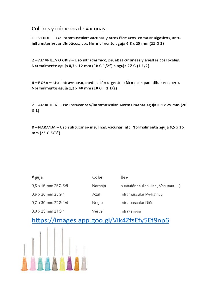 1 – VERDE – Uso intramuscular: vacunas y otros fármacos, como analgésicos, anti-