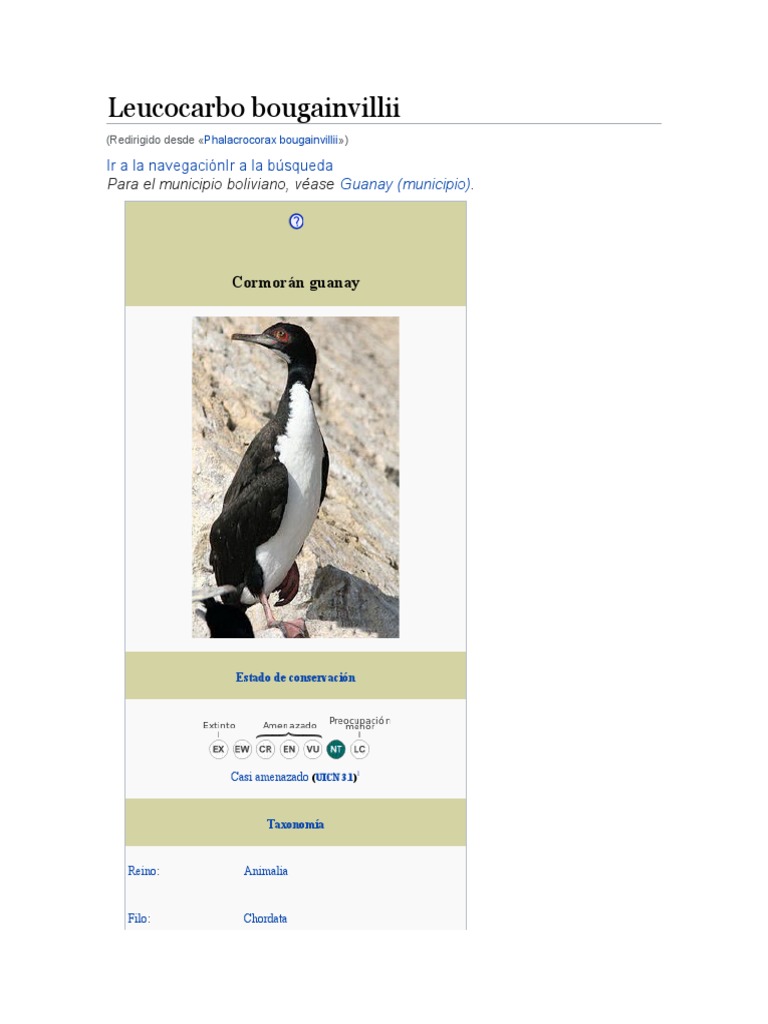 1. ↑ BirdLife International (2014). «Phalacrocorax bougainvillii». Lista Roja de especies