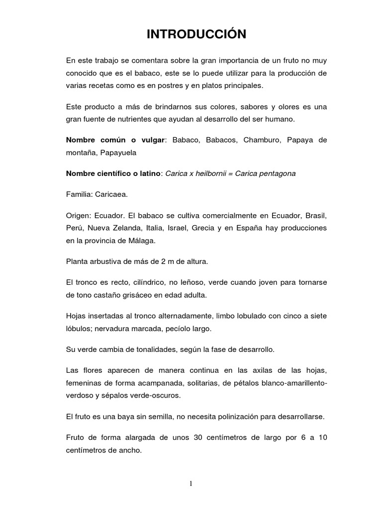 nutritivas y usos gastronomitos, ya que en la actualidad el babaco no es tan