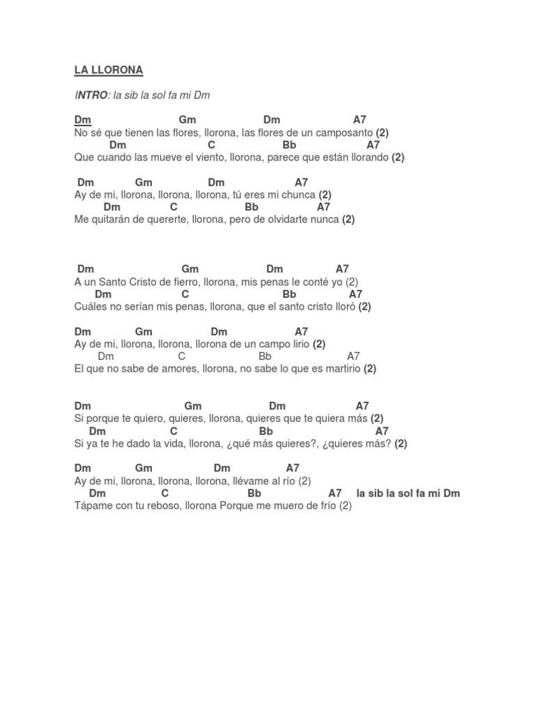 Ay de mi, llorona, llorona, llorona, tú eres mi chunca (2)