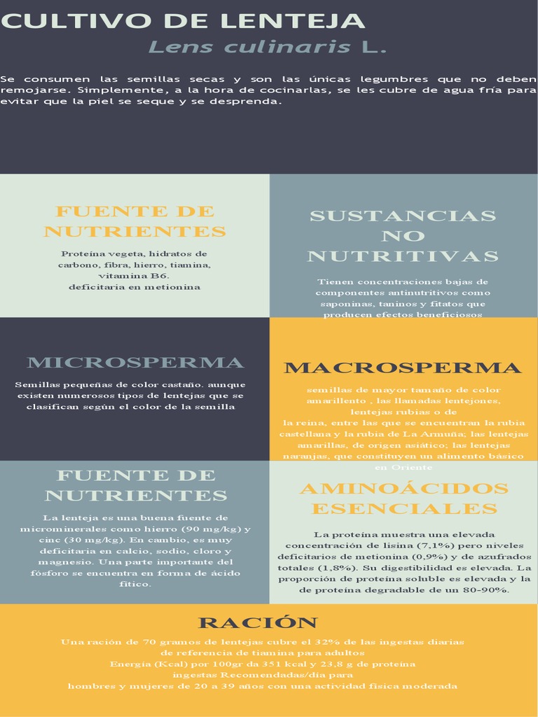 nutricionales mas resaltantes del cultivo de lenteja junto con otras características