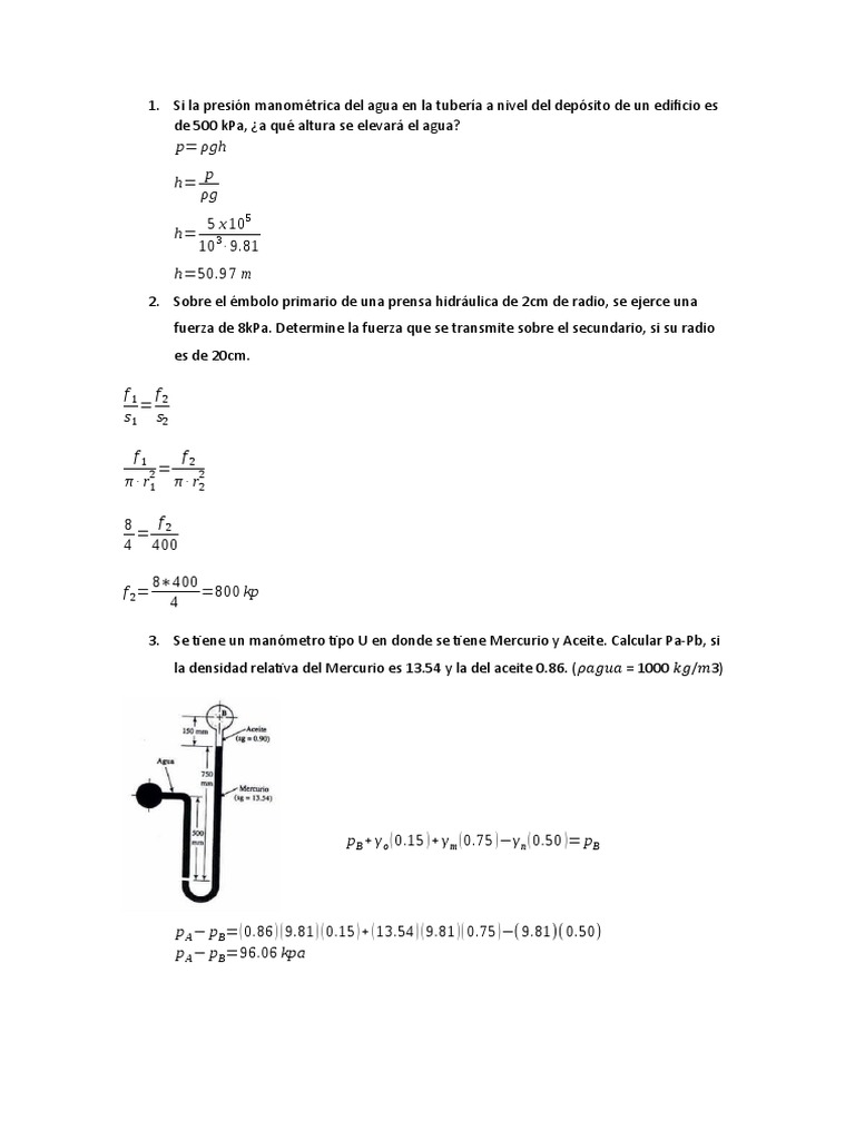 la densidad relativa del Mercurio es 13.54 y la del aceite 0.86. (𝜌𝑎𝑔𝑢𝑎 = 1000 𝑘𝑔/𝑚3)