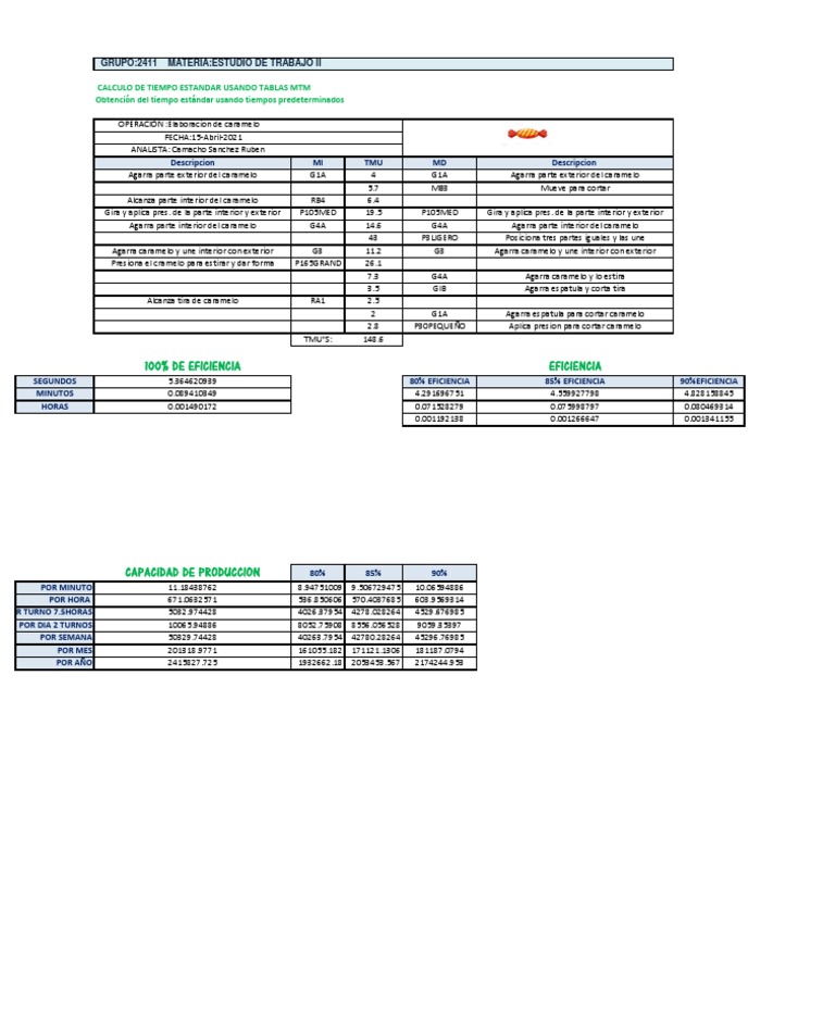 CALCULO DE TIEMPO ESTANDAR USANDO TABLAS MTM