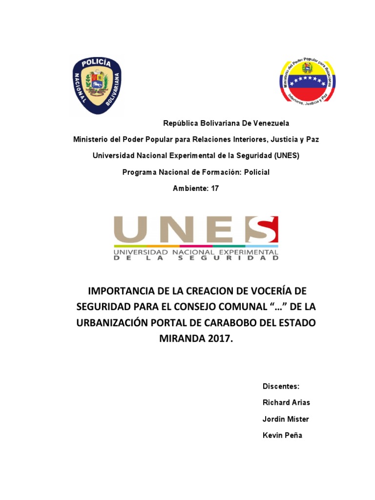 SEGURIDAD PARA EL CONSEJO COMUNAL “…” DE LA