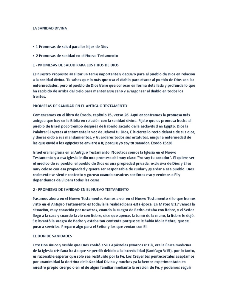 LA SANIDAD DIVINA